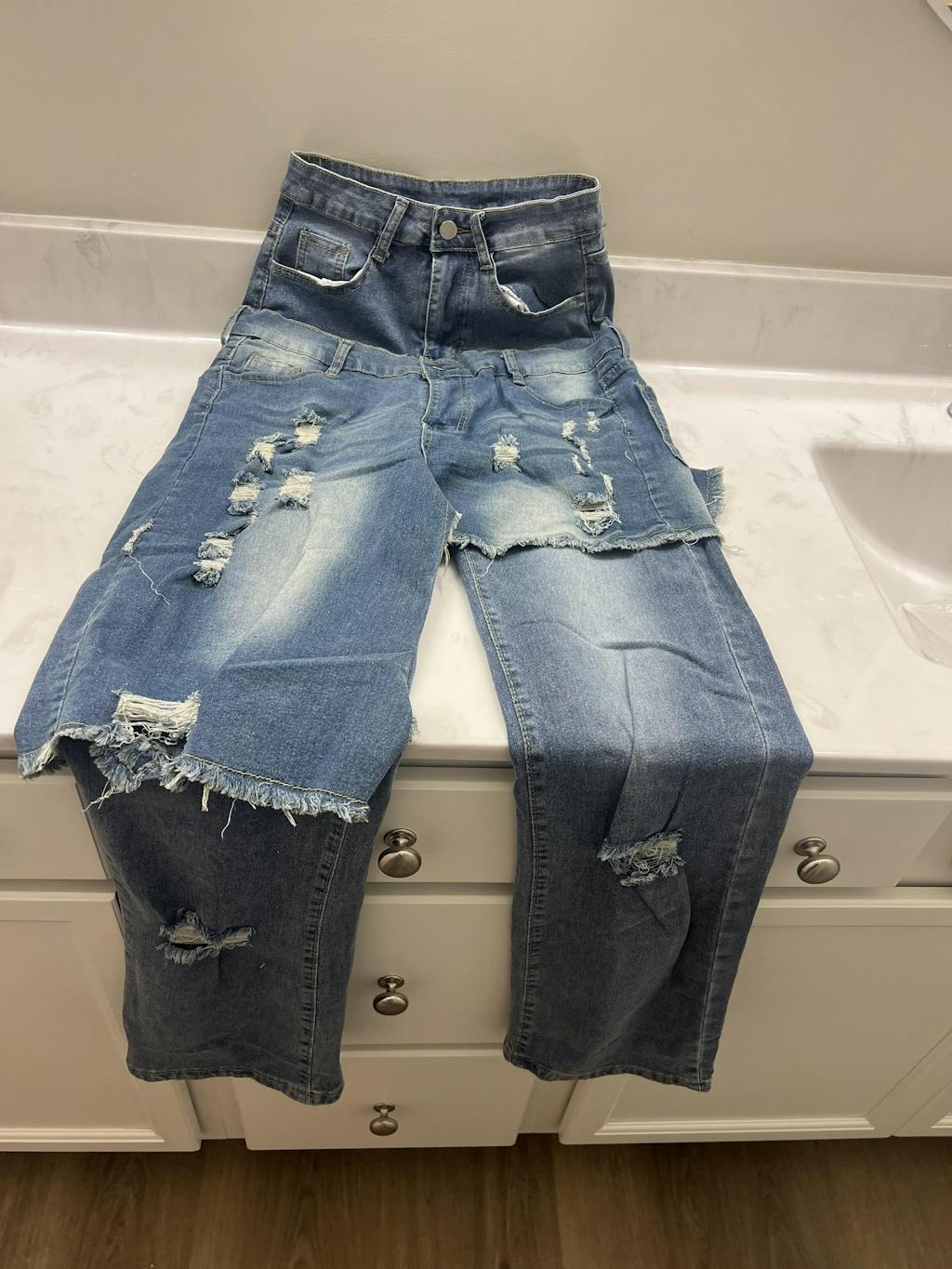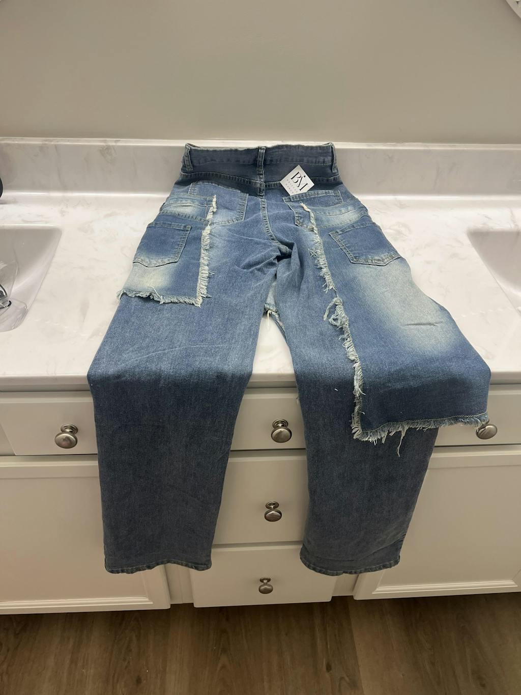 The Double Take Denim features a double-layer construction, giving you a bold, sculpted shape with a unique exposed panel that sets these apart from every pair in your closet. The layered detailing creates dimension and instantly elevates any outfit.