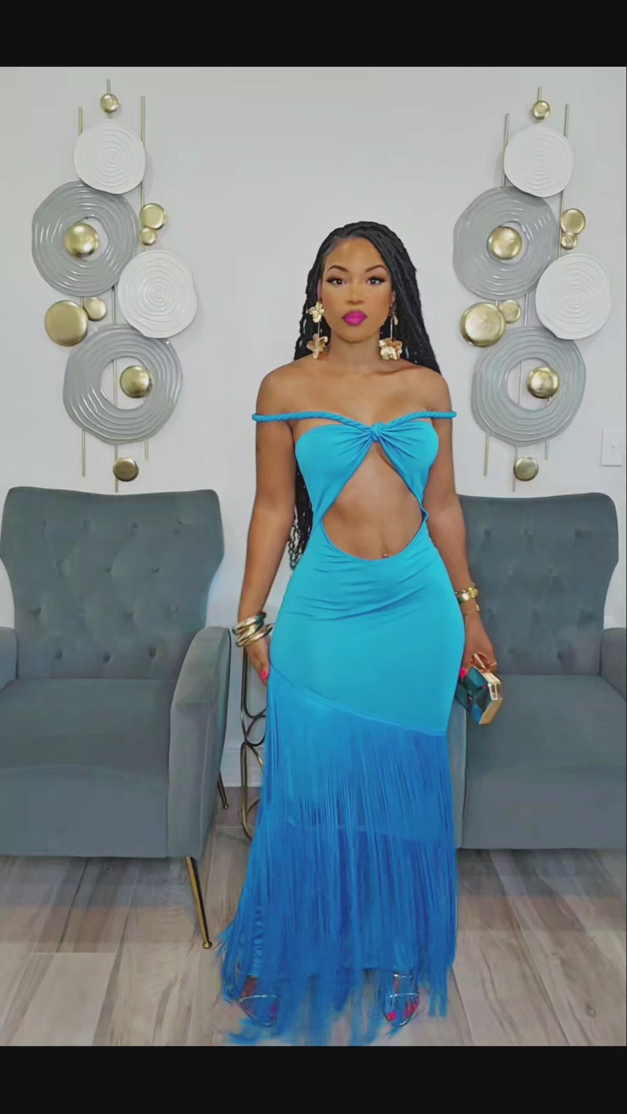 She doesn’t walk in she shuts it down. Certified Pressure is that bold blue dress that hugs your body, commands attention, and moves like a whole moment. With a multi-style rope tie neckline, cutout waist, and swaying fringe hem, this dress gives drama on your terms.